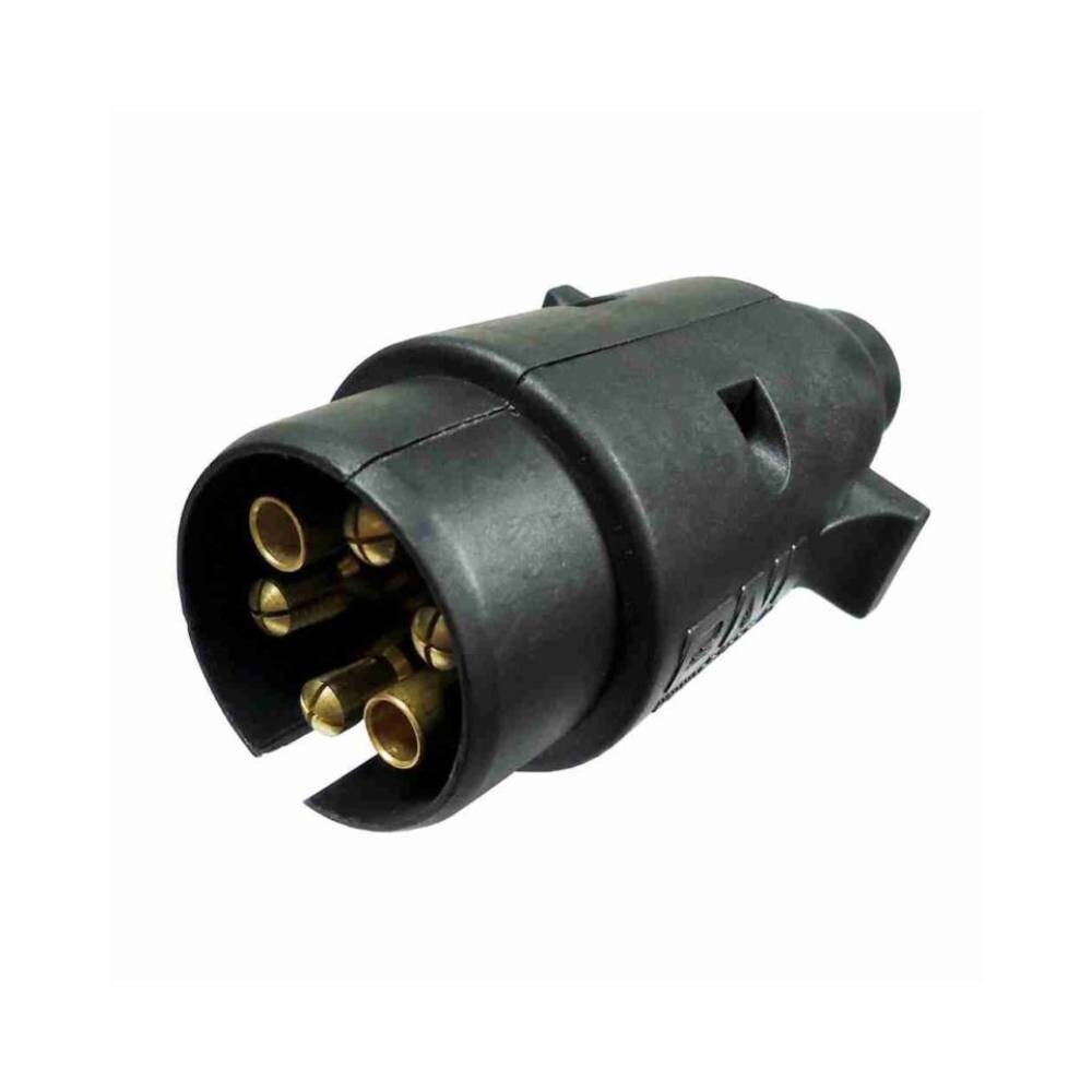 A DNI8380 – Tomada Elétrica P/ Engate Redonda 6 Polos, Macho – Nylon Preto – 12/24V é uma tomada elétrica para engate de 6 polos em nylon preto, projetada para a conexão elétrica entre o veículo trator e o reboque/semirreboque. Na versão macho (móvel), fixada no chicote do veículo trator garante a transmissão confiável dos sinais de iluminação, freio e ABS. Fabricada pela DNI com material de alta resistência às intempéries.