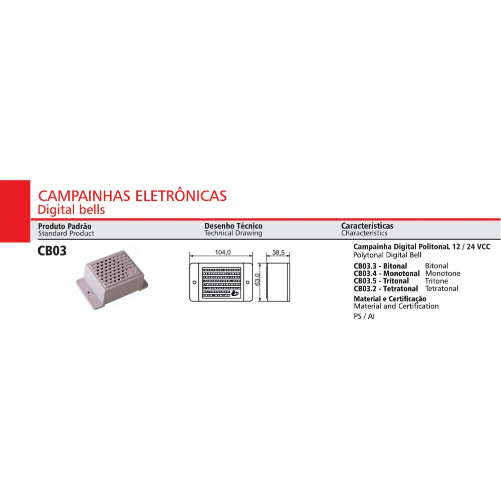 Campainha Digital Politonal 12/24v Digital Tritonal Retangular 04 terminais