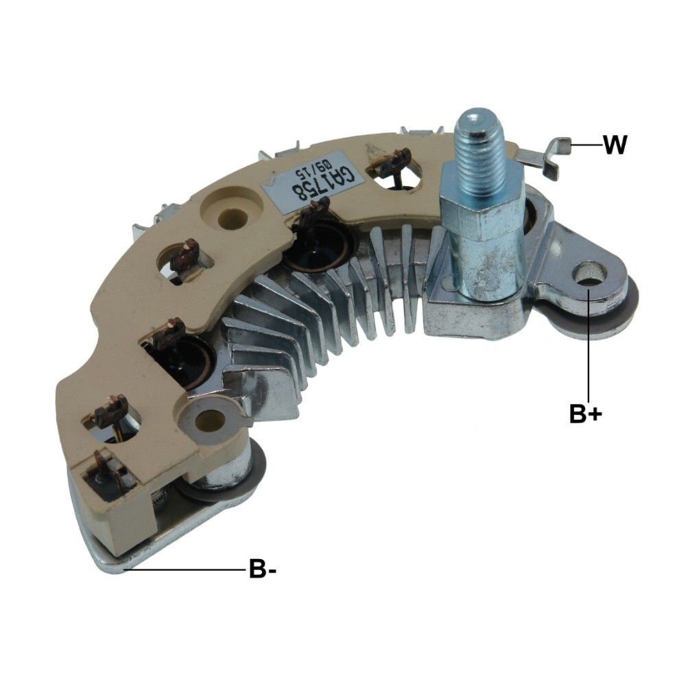 A Placa Retificadora Gauss GA1758 é um componente essencial do sistema de carga do alternador, com tensão de 12 V, corrente de 85,00 A, amperagem de 35 A. Responsável pela conversão da corrente alternada em corrente contínua, garantindo o fornecimento estável de energia para a bateria e o sistema elétrico do veículo. Fabricada com diodos de silício de alta pureza e dissipador de calor eficiente, proporcionando durabilidade e confiabilidade. Produto com garantia de fábrica Gauss.